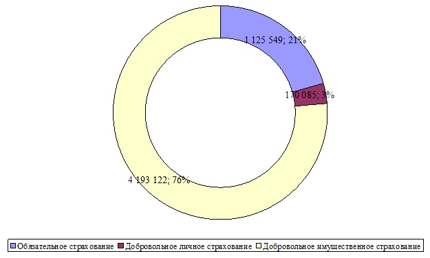 Наибольший удельный вес портфеля страхования занимает добровольное имущественное страхование – 76% или 4 193 122 тыс. тенге.