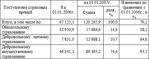Совокупный объем страховых премий, принятых страховыми (перестраховочными) организациями за 2006 год составил 120 265,91 млн. тенге, что на 79,2% больше объема, собранного за 2005 год.