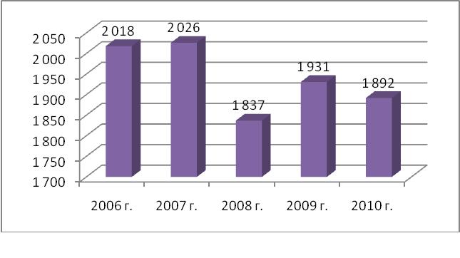 Численность врачей всех специальностей в ЗКО в 2010 году составила 1 892 человека, это на 39 человек меньше, чем в 2009 году (рисунок 3).