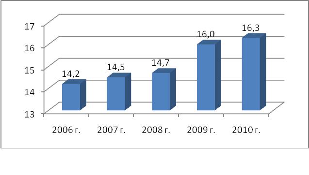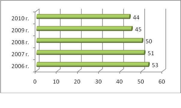 Число больничных организаций в ЗКО на конец 2010 года составило 44 единицы. Это на 1 единицу меньше, чем в 2009 году (рисунок 2).
