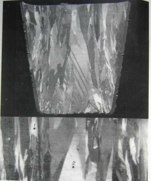 ... Важный результат проведенных экспериментов — получение кремния с низким содержанием бора (2 ppm) и фосфора (10 ppm), что является рекордным достижением чистоты (по этим примесям) для металлургического кремния, производимого прямым карботермическим восстановлением. Такой металлургический кремний пригоден для получения кристаллических образцов известными методами (методы Чохральского, Степанова и др.). Поскольку для большинства примесей в кремнии характерны очень низкие значения эффективного коэффициента распределения (Al — 2,8·10-3, Cu — 8·10-4 , Fe — 6,4·10-6 , Ti — 2·10-6), то при кристаллизации они оттесняются из твердой фазы растущего кристалла в жидкую зону расплава. Таким образом, кристаллизация является одновременно эффективным методом очистки кремния. Правда, это не относится к двум наиболее важным примесям в кремнии — к фосфору (коэффициент распределения 0,35) и в особенности к бору (0,8). Удаление фосфора достигается при высокотемпературном рафинировании жидкого кремния в вакууме, бор таким способом удалить не удается (давление его паров меньше, чем у кремния). ...