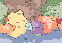 The movement of plates has caused the formation and break-up of continents over time, including occasional formation of a supercontinent that contains most or all of the continents. The supercontinent Columbia or Nuna formed during a period of 2.0–1.8 billion years and broke up about 1.5–1.3 billion years ago.[8] The supercontinent Rodinia is thought to have formed about 1 billion years ago and to have embodied most or all of Earth's continents, and broken up into eight continents around 600 million years ago. The eight continents later re-assembled into another supercontinent called Pangaea; Pangaea broke up into Laurasia (which became North America and Eurasia) and Gondwana (which became the remaining continents).