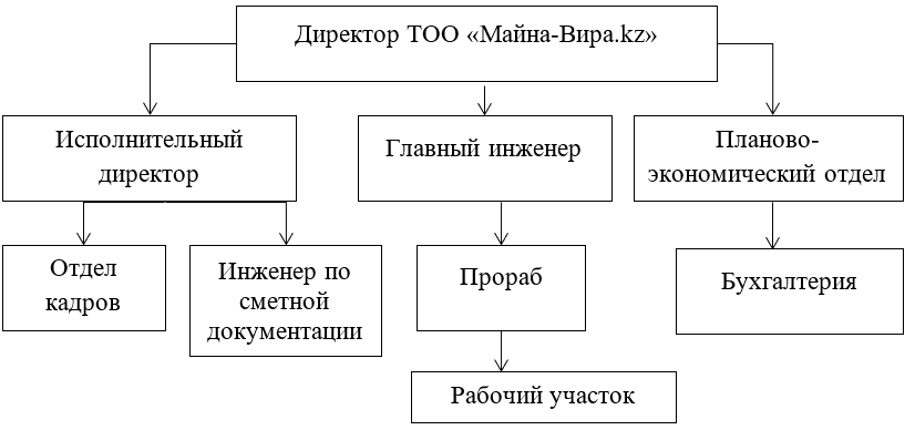Рисунок 1 - Организационная структура ТОО «Майна-Вира.kz»